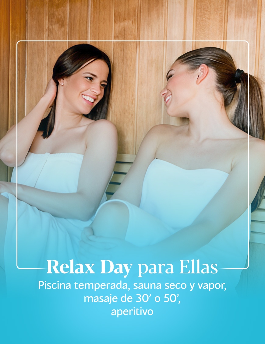 Piscina temperada | sauna seco | sala de vapor | masaje de relajación | splash aromaterapia | aperitivo