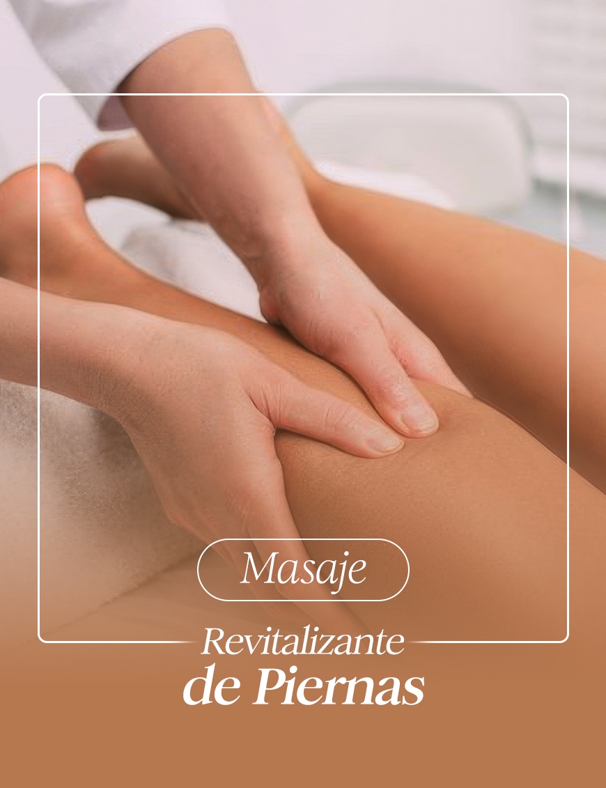 Masaje que revitaliza y recupera las piernas que han sido sometidas a una actividad física o fatiga muscular. Descongestiona, calma y oxigena. Acompaña a la sesión una exfoliación e hidratación refrescante de pies